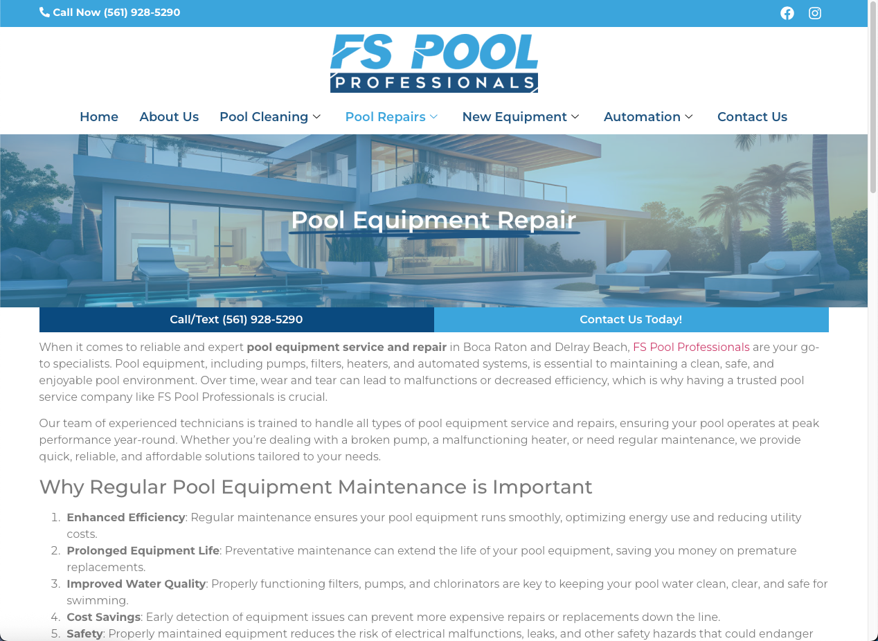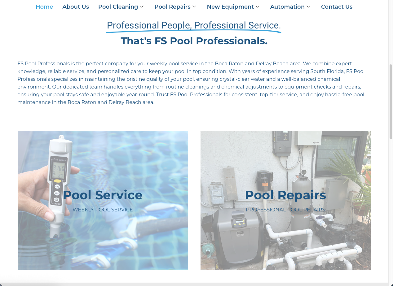 Site institucional desenvolvido para empresa especializada em serviços de piscinas na Flórida, EUA.